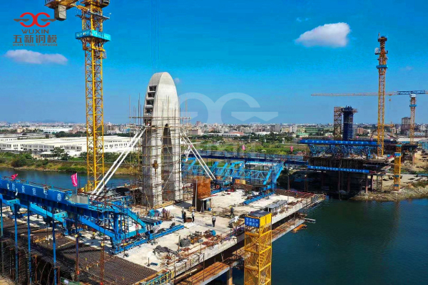 香海大橋跨越廣東省珠海、中山兩市,北起西部沿海高速坦洲互通立交,終點(diǎn)止于斗門區(qū)湖心路,全長29.8公里,采用高速公路技術(shù)標(biāo)準(zhǔn),為雙向六車道。中鐵四局香海大橋TJ5標(biāo)全長2.66千米,主要工程為白藤河特大橋,橋梁全長2178.8米。