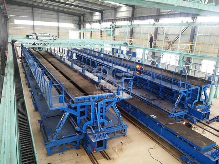 工程亮點或工程難點:模板采用外模固定,底模縱向電機走形,實現環形生產;