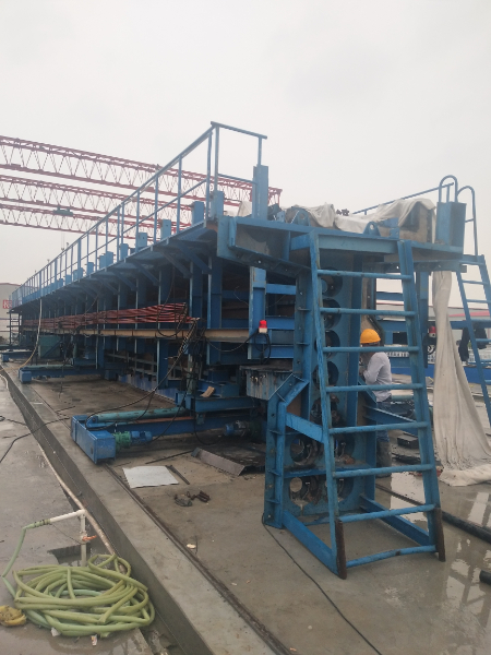 東津新區梁場總占地266畝,負責全線730孔梁的預制、施工任務,其中雙線箱梁479孔、單線箱梁142孔、東津站走行線T梁109孔。