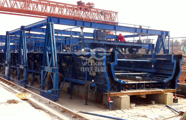 外模:結構牢靠,安裝、調試快捷方便;采用激光切割下料,成型精度高、側模通過調整底部千斤頂和螺旋撐桿來保證外形尺寸及標高,同時在地面與側模之間設置斜撐桿,在保證梁體外形尺寸的同時還能有效的防止模板上浮。