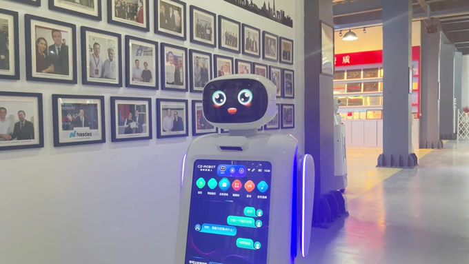 創澤智能消毒機器人和智能大屏機器人等多款機器人亮相蘭洽會,彰顯了創澤AI技術實力與場景深耕能力