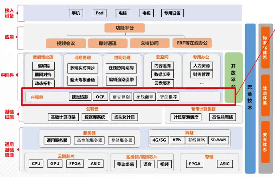 AI賦能協(xié)同辦公系統(tǒng),如圖22所示,提升辦公軟件性能。AI技術(shù)主要是讓在線辦公系統(tǒng)更加智能,提供更出色的用戶體驗。網(wǎng)絡(luò)質(zhì)量預(yù)測。用于動態(tài)調(diào)整網(wǎng)絡(luò)拓?fù)、編碼方式等,保證通信質(zhì)量。人臉識別技術(shù)驗證身份,提升會議系統(tǒng)的安全性。對視頻質(zhì)量進(jìn)行動態(tài)改善,提升交流體驗。利用語音識別和翻譯技術(shù),實(shí)現(xiàn)會議字幕生成和翻譯。AI在協(xié)同辦公軟件中可發(fā)揮的作用有待進(jìn)一步挖掘。
