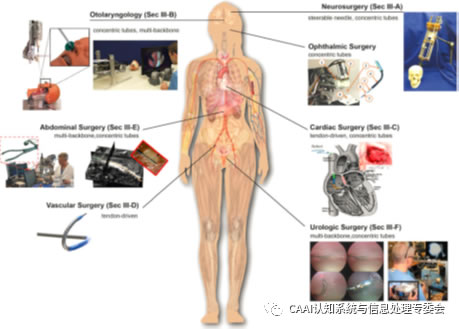 Choset[2]總結了連續體機器人應用于外科手術的重要研究。作者調查了醫學應用中連續機器人研究的核心技術,包括特定醫療問題的設計、建模、控制、傳感和應用方面的實質性進展。同時,概述了在臨床方面商業化或相對較先進的手術系統。作者介紹了兩個已經獲得FDA批準的連續體機器人應用:遠程操作的連續機器人系統(HansenMedical Inc.和StereotaxisInc.)和超冗余系統(Medrobotics Inc.)。連續體因為可提供侵入性較小的通路和操作,將越來越有利于外科醫生和患者。