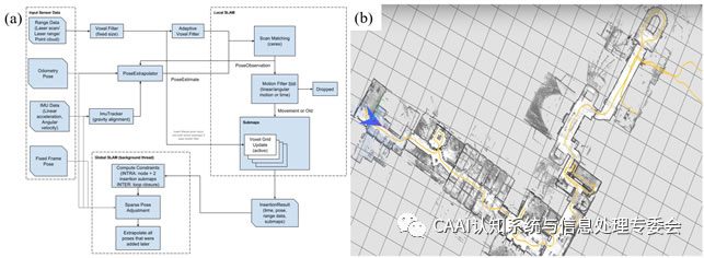 Cartographer[1]是google在2016年開源[2]的跨平臺和傳感器配置,并提供2D和3D實時同步定位和建圖的SLAM系統(tǒng),主要通過閉環(huán)檢測來消除構(gòu)圖過程中產(chǎn)生的累積誤差,以達到融合多傳感器數(shù)據(jù)的局部submap創(chuàng)建和用于閉環(huán)檢測的scan match策略的實現(xiàn)。主要包括cartographer和Cartographer_ros兩部分,其中cartographer為底層實現(xiàn),主要負責處理來自Laser、IMU、Odemetry的數(shù)據(jù)并基于這些數(shù)據(jù)進行地圖的構(gòu)建。cartographer_ros是基于cartographer的上層應(yīng)用,主要負責從ros的通信機制獲取傳感器的數(shù)據(jù)并將它們轉(zhuǎn)換成cartographer中定義的格式傳遞給cartographer處理,與此同時也將cartographer的處理結(jié)果用于發(fā)布、顯示或保存。
