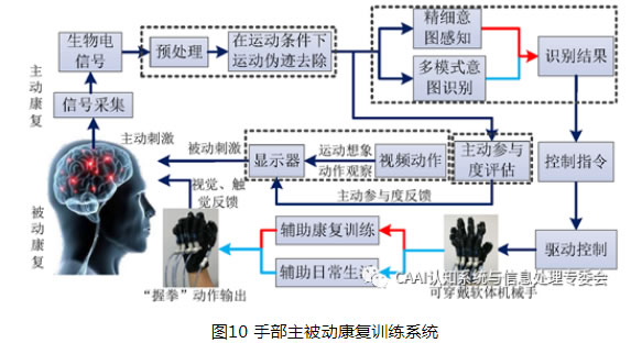 根據(jù)手部主被動訓(xùn)練的康復(fù)需求,基于課題組在運動意圖識別、腦機接口、軟體手等方面的研究基礎(chǔ),設(shè)計了一種可康復(fù)訓(xùn)練可日常生活輔助的穿戴式主被動康復(fù)訓(xùn)練系統(tǒng),系統(tǒng)的主要功能包括:多范式刺激、精細(xì)意圖感知、多模式意圖識別等[14]。