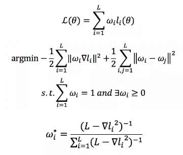 這是一個多任務學習問題,如何平衡這些任務的學習權(quán)重呢?另外,還有一個問題,目前很多實驗指出 BERT 中 NSP 的效果并不一定非常有效,對終的結(jié)果的影響不是特別明朗。但是對于圖文匹配來說,Text and Image Alignment 這個 loss 是至關(guān)重要的。那么如何平衡這幾個任務的學習呢?這里我們提出 adaptive loss 算法,我們將學習任務的權(quán)重看做是一個新的優(yōu)化問題,如圖 3 所示。FashionBERT 的 loss 是整體 loss 的加和,由于只有三個任務,其實我們可以直接得到任務權(quán)重 W 的解析解(具體的求解過程可以參考我們論文,這里不再贅述)。