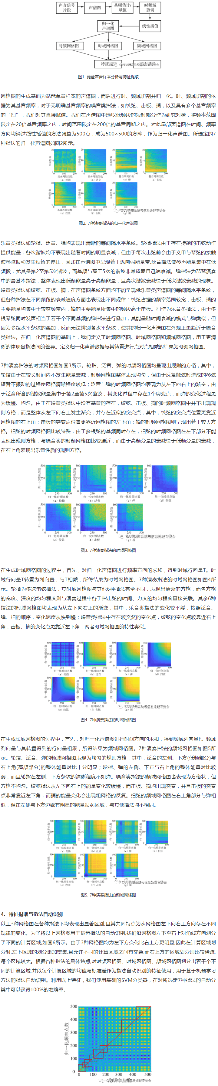 在人工智能方法飛速發(fā)展的今天,對(duì)樂(lè)器的演奏指法的自動(dòng)分析在樂(lè)曲的檢索、鑒賞引導(dǎo)、演奏輔助學(xué)習(xí)等方面均具有重要意義。琵琶作為一種中國(guó)傳統(tǒng)樂(lè)器,對(duì)其進(jìn)行自動(dòng)分析的已有工作大多集中于對(duì)琵琶聲音的算法合成方面的探討[1-3],而在指法自動(dòng)識(shí)別、分類方面涉及很少。在我們的工作中,提出了對(duì)琵琶不同指法所產(chǎn)生的聲音具有明顯區(qū)分度的網(wǎng)格圖特征,用于對(duì)幾種典型的琵琶演奏指法進(jìn)行基于機(jī)器學(xué)習(xí)的自動(dòng)識(shí)別。