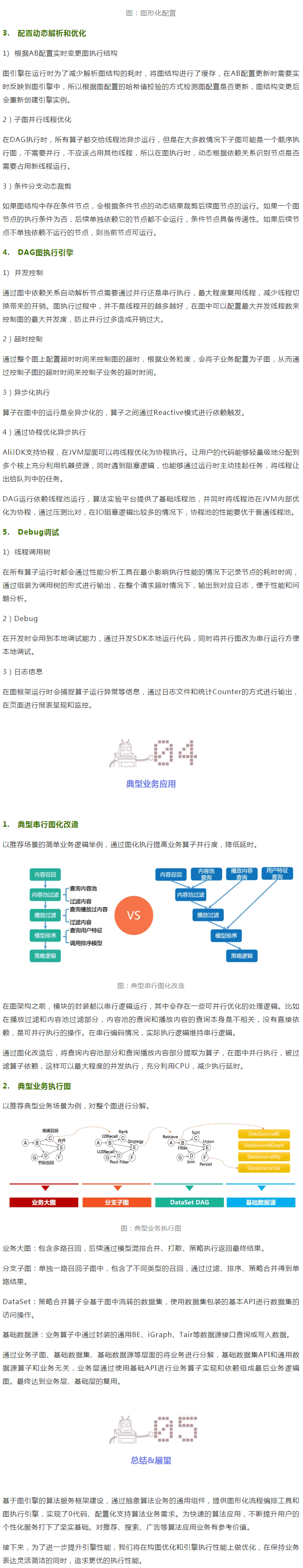 但在實際的算法應用業務中,比如優酷推薦業務,算法應用場景眾多(100+活躍場景),需求靈活多變,如果沒有一套通用業務框架,用于抽象出通用和定制化的部分來提G算法組件的復用度;會嚴重拖慢算法實驗的節奏。基于圖引擎的算法服務框架就是為了封裝一套框架,抽象算法在線服務的通用算子,支持運行時的算法流程的裝配,提升算法服務場景搭建的效率。