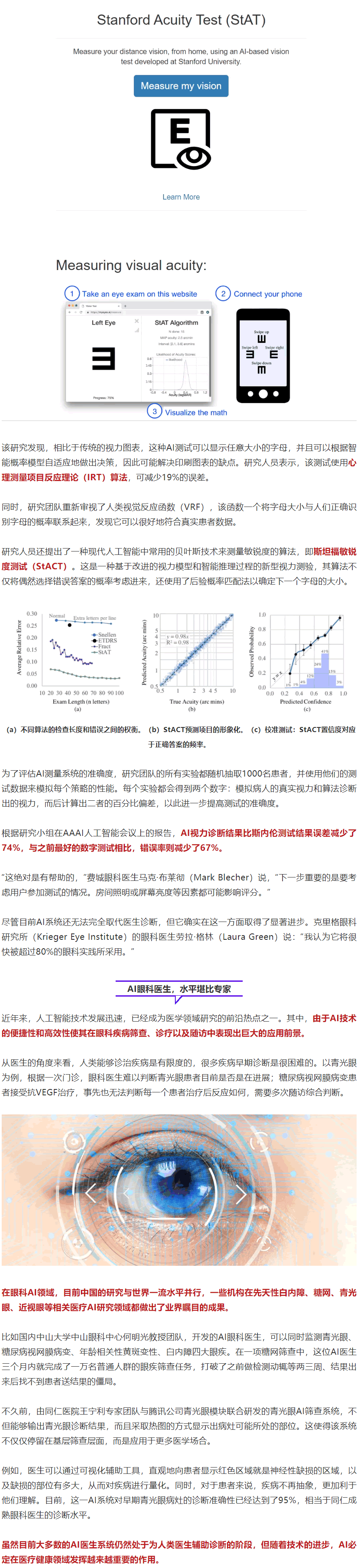 近日,斯坦福大學(Stanford University)計算機科學家克里斯·皮奇(Chris Piech)及其同事開發了一種由人工智能(AI)推動的在線視力測試系統,該系統僅需進行四步操作,即可完成視力測試,且結果十分準確。