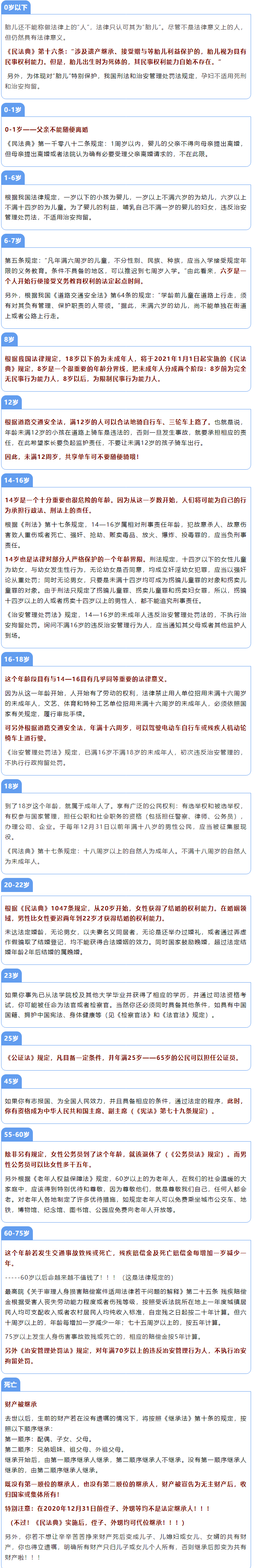《民法典》實施后,法律年齡隨之改變,當我們從一個受精卵那天起,按下年齡的計時器,我們的故事就計時開始了。其實,法律也和年齡一樣,伴隨著我們的一生。