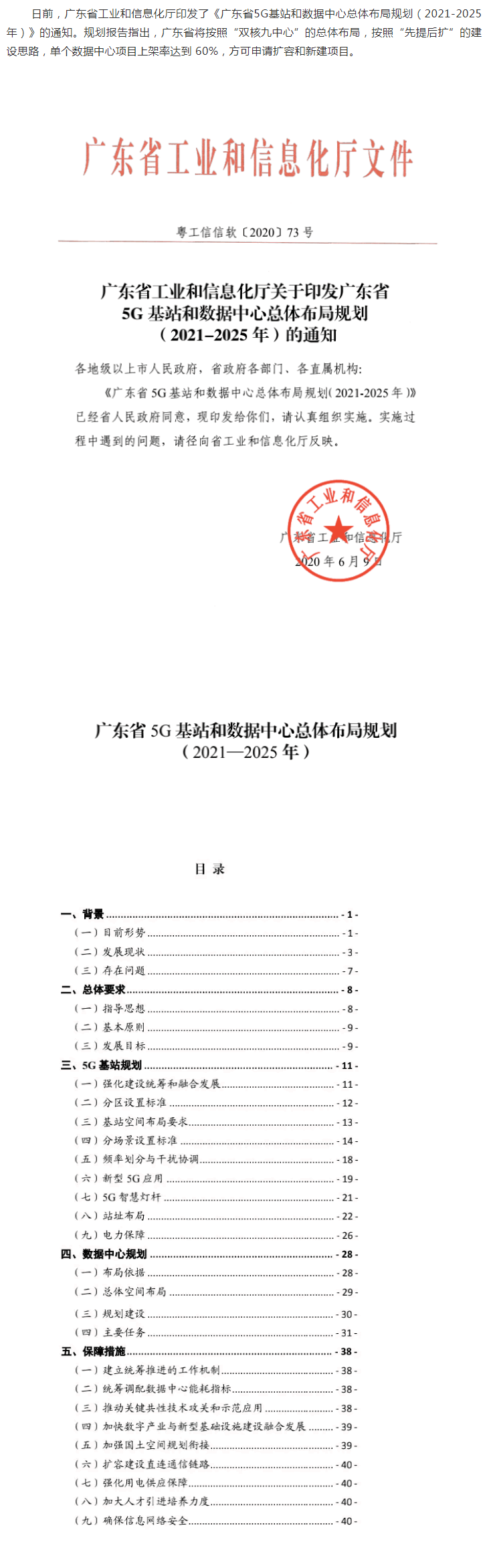 廣東省5G基站和數據中心總體布局規劃(2021-2025 年)