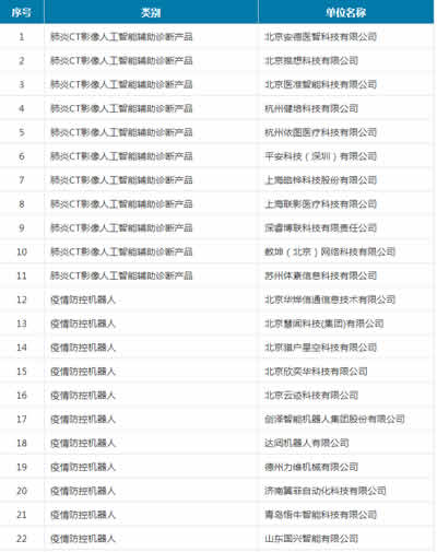 附件:在科技支撐抗擊新G肺炎疫情中表現(xiàn)突出的人工智能企業(yè)名單