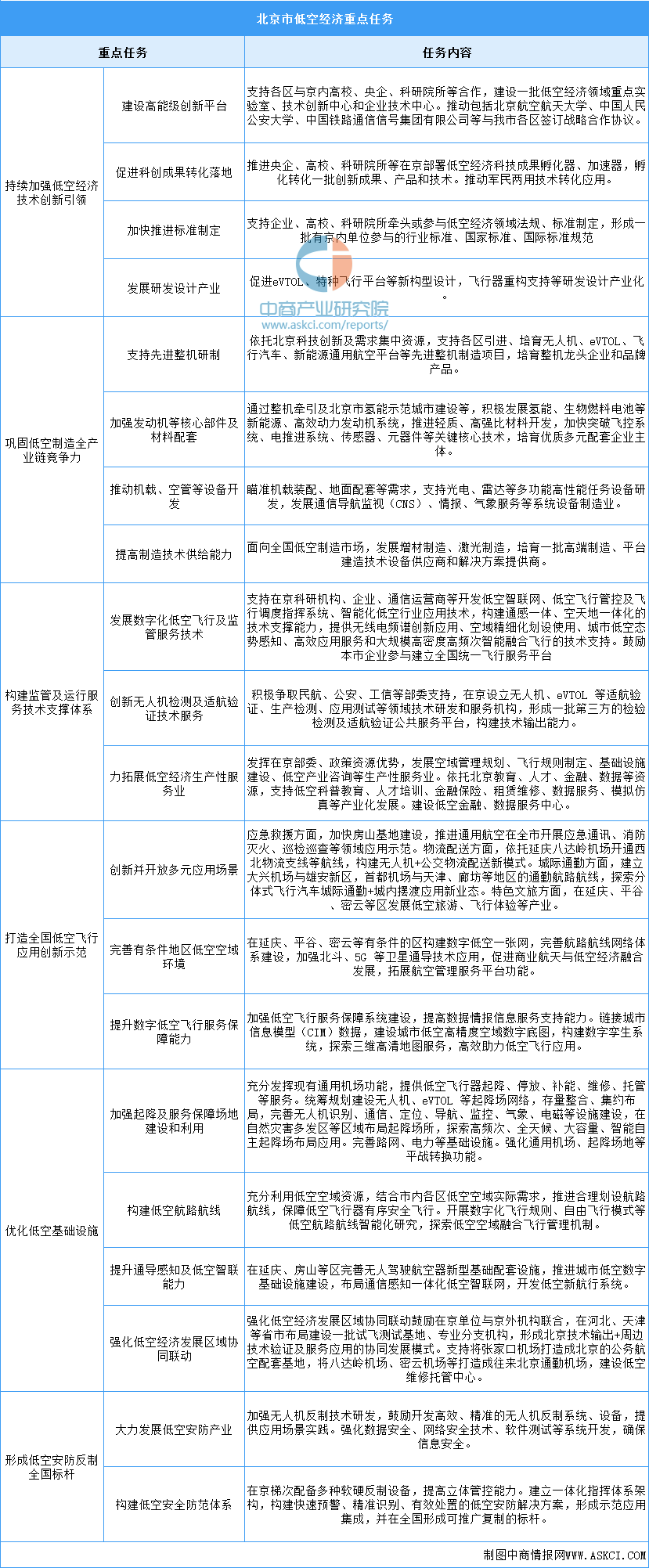 北京市低空經濟重點任務