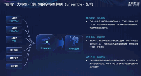 系統應用BERT、GPT或其變體等先進的NLP大模型,以及知識圖譜、業務規則,結合達觀數據“曹植”大模型做多模型并聯結合?蓳碛袕臄祪|到超過一百億的參數量,使其能夠有效地處理和分析大量該公司歷來文本數據,用于客服問答、知識管理、制度管理、知識搜索等任務。