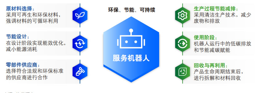 服務(wù)機器人行業(yè)有著技術(shù)創(chuàng)新驅(qū)動和多領(lǐng)域應(yīng) 用的特點 ,其生產(chǎn)和使用對環(huán)境的影響尤為重 要。當(dāng)前范圍內(nèi)環(huán)境保護法規(guī)和政策不斷 加強 ,對G科技行業(yè)的環(huán)境責(zé)任提出了更G要 求。消費者和投資者越來越關(guān)注企業(yè)的環(huán)境責(zé) 任 ,企業(yè)的環(huán)境表現(xiàn)直接影響服務(wù)機器人企業(yè) 的品牌形象和市場競爭力。本白皮書經(jīng)過充分 調(diào)研 ,證明通過以下策略可有效構(gòu)建服務(wù)機器 人行業(yè)的綠色供應(yīng)鏈: