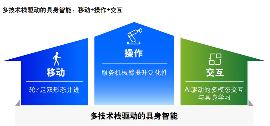 隨著行業(yè)發(fā)展進(jìn)入深水區(qū) ,單一的技術(shù)路線已 無(wú)法滿足市場(chǎng)需求。進(jìn)入行業(yè)下半場(chǎng)需要以更 廣闊的視角審視產(chǎn)業(yè)發(fā)展方向。在構(gòu)建全棧式 智能生態(tài)的過程中 ,多技術(shù)棧的協(xié)同發(fā)展已成 為必然選擇。從技術(shù)演進(jìn)的角度來(lái)看 ,當(dāng)前服 務(wù)機(jī)器人行業(yè)正處于關(guān)鍵轉(zhuǎn)型期——從單一的自主移動(dòng)能力向集移動(dòng)、操作、交互于一體的 多技術(shù)棧邁進(jìn)。可以預(yù)見 ,在多技術(shù)棧的驅(qū)動(dòng)下 ,以多模態(tài)感知、 自主決策、靈巧操作為核心特征的具身智能 ,將成為推動(dòng)全棧式智能生態(tài)發(fā)展的核心驅(qū)動(dòng)力。