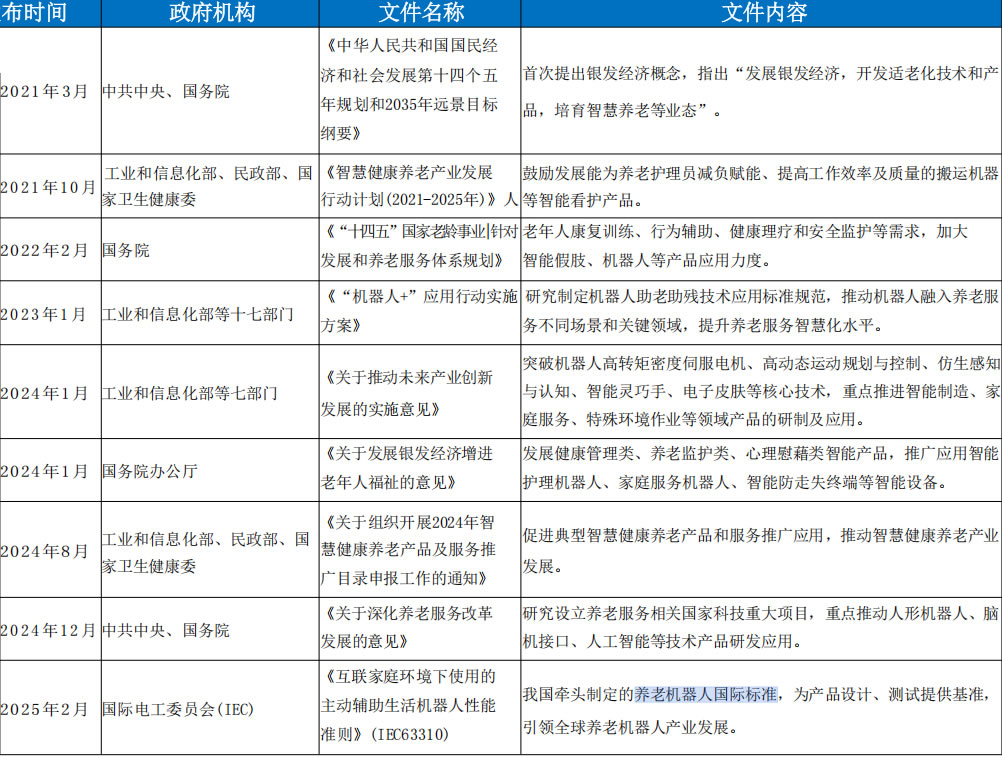 基于社會(huì)老齡化和安全戰(zhàn)略考量,21年來(lái)黨和密集出臺(tái)多項(xiàng)養(yǎng)老機(jī)器人D層政策文件,彰顯對(duì)老齡化工作的
