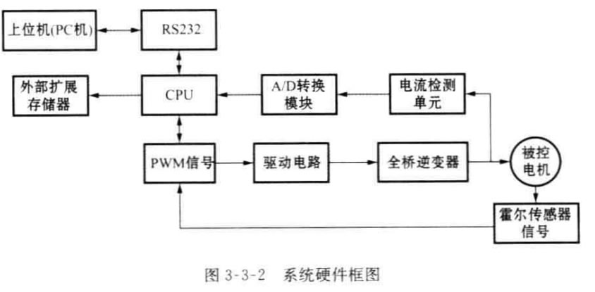 系統的硬件框圖如圖3-3-2所示,可以看出基本上包括一個以TMS320F2812DSP 為核心的DSP 控制板,一塊配套的功率驅動板和一臺無刷直流電機。實現的 主要功能是控制指令的接收和執行,速度信號的接收和計算處理,電流采樣信號接 收和轉換,速度閉環和電流閉環控制算法的執行等。