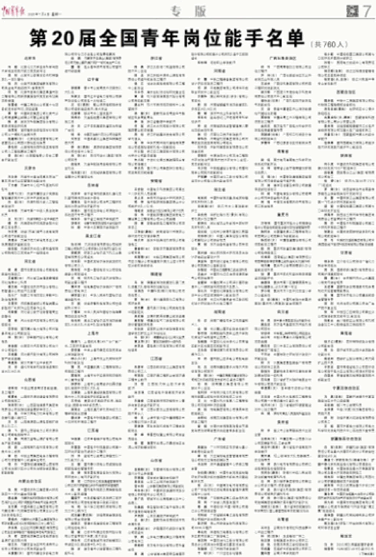 青年崗位能手:張世亮 劉雪帥 何佳越 裴德堂 方焌暢 陳斌 彭興朋 唐冬杰 孫世龍 王玉龍 趙德鵬 林暉 姜勇 胡鵬