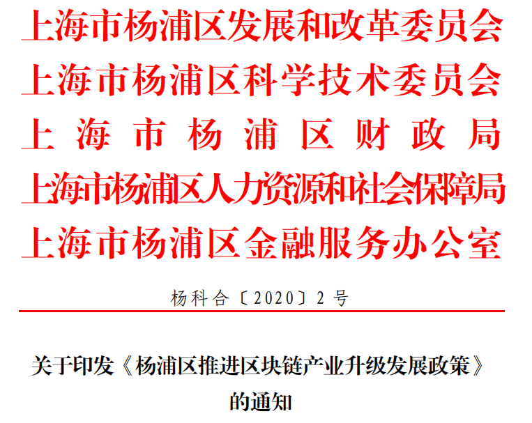 關于印發《楊浦區推進區塊鏈產業升級發展政策》的通知