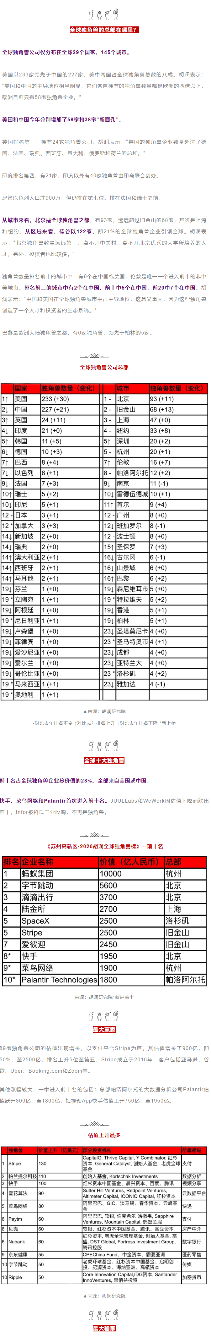 今日,胡潤研究院攜手蘇州G新區發布《蘇州G新區·2020胡潤獨角獸榜》,列出了成立于2000年之后、價值10億美元以上的非上市公司。
