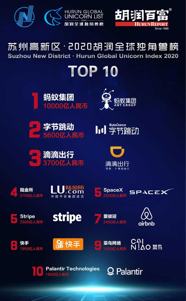 以2500億人民幣的估值位列第五?偛课挥谂f金山的在線支付公司Stripe由約翰•克里森和帕特里克•克里森兄弟于2010年創立。Stripe為企業提供支付解決方案,并通過提供在線基礎設施來幫助企業開展業務。在一輪2020年4月的融資中,這家總部位于硅谷的電子支付技術企業宣布已融資6億美元,公司估值達到360億美元。