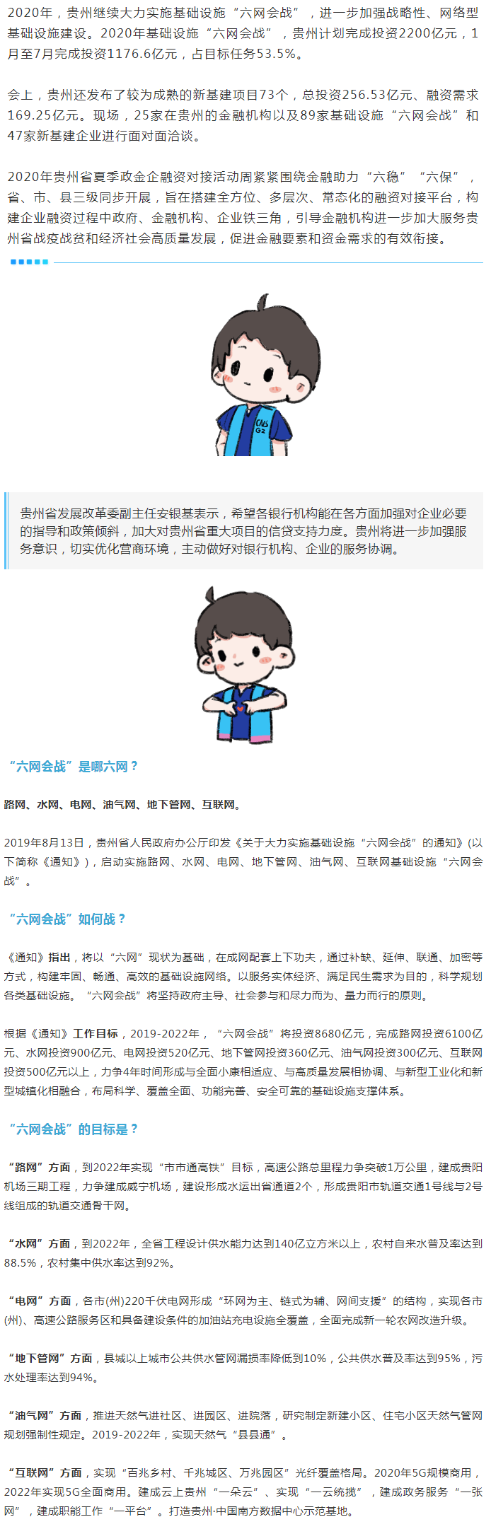 8月6日,2020年貴州省夏季政金企融資對接活動周基礎設施“六網會戰”和新基建項目融資洽談會在貴陽舉行。會上,省發展改革委向金融機構發布了“六網會戰”和新基建項目261個,總投資5477.98億元、融資需求3290.53億元。其中,新基建項目73個,總投資256.53億元、融資需求169.25億元。25家在黔金融機構與89家基礎設施“六網會戰”和47家新基建項目建設單位進行了面對面洽談。