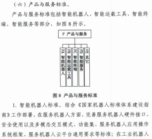 智能機器人標準:結合《國家機器人標準體系建設指 南》工作部署,在服務機器人方面,完善服務機器人硬件接口、 安全使用以及多模態交互模式、功能集、服務機器人應用操作 系統框架、服務機器人云平臺通用要求等標準;在工業機器人 方面,重點在工業機器人路徑動態規劃、協作型機器人設計等 開展標準化工作。