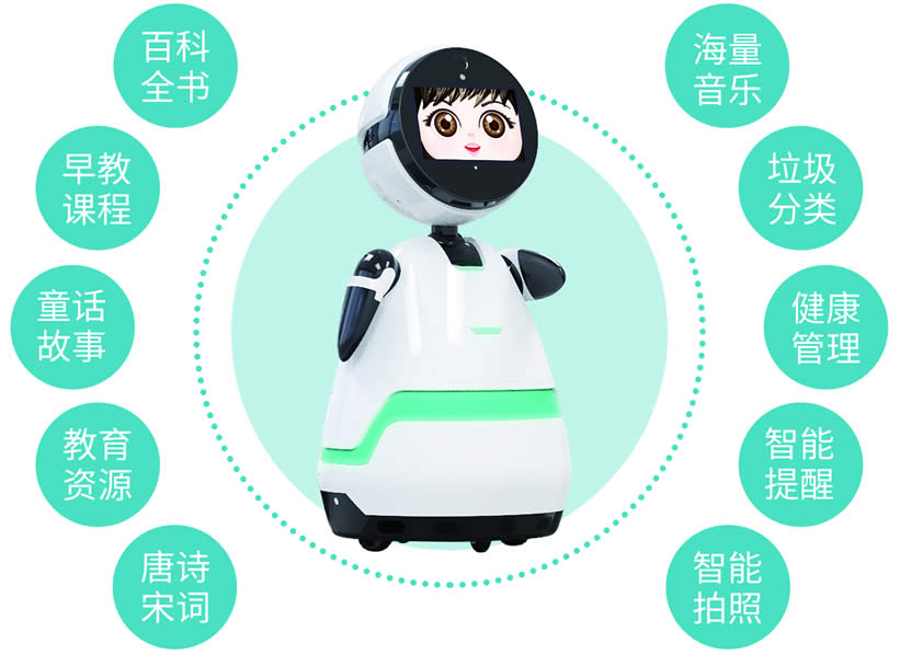 智能陪伴機器人采用云平臺加本地化語音庫支持各種信息顯示,表情展示、觸摸輸入等人工交互過程,具備娛樂、早教、陪護、安防等功能,可用于家庭陪護教育及遠程監控防護。