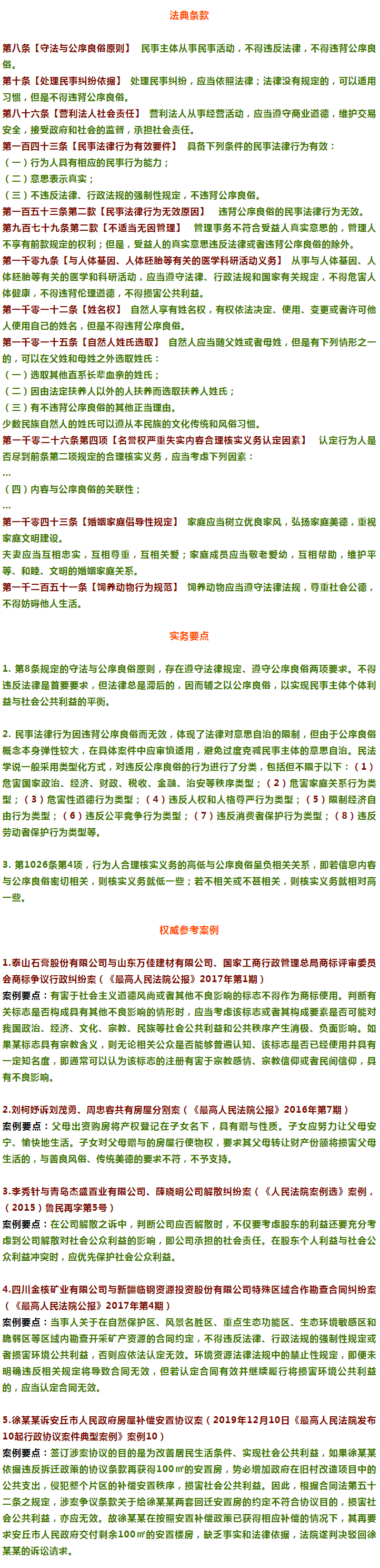 民法典中涉及“公序良俗”的條款梳理、要點提示、參考案例