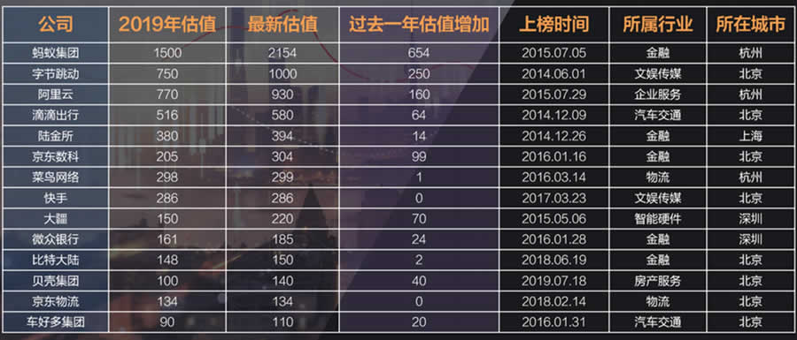 字節(jié)跳動,螞蟻金服,滴滴出行,快手,陸金所,菜鳥網(wǎng)絡(luò),京東數(shù)科,微眾銀行,馬上金融,商湯科技,京東物流,曠視科技,優(yōu)必選
