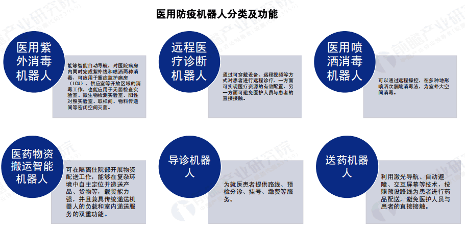 新G疫情中,防疫機器人在醫(yī)療L域主要企業(yè)有鈦米機器人、東富龍、靈至科技、達闥科技等企業(yè),用于 醫(yī)院疫情防護中的消毒、清潔、送藥、無人導(dǎo)診等工作