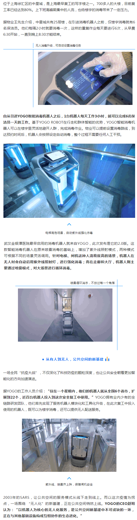 3月13日,L先的機器人企業YOGO ROBOT宣布,繼噴霧消殺機器人在疫區服役后,他們的版智能消毒機器人,也將多面投入到復工企業的日常保衛戰中。
