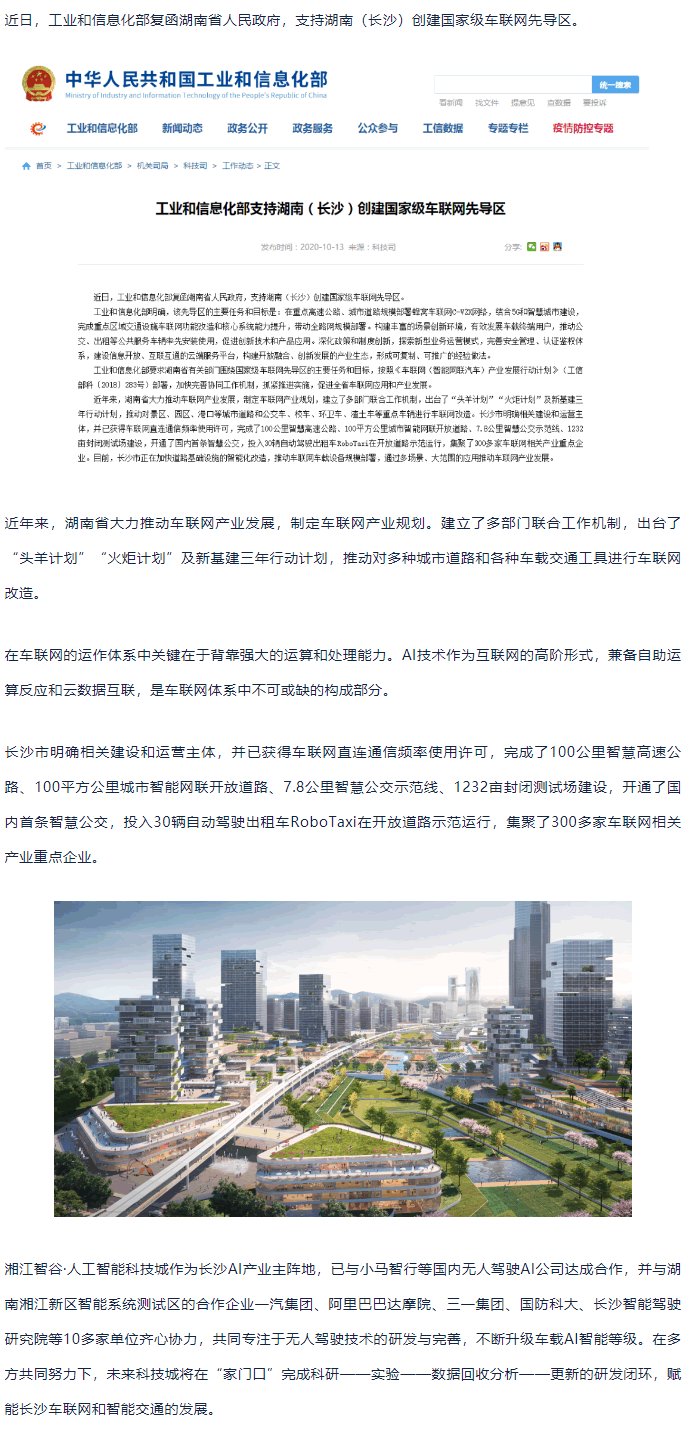 工信部復函支持湖南(長沙)創建車聯網先導區