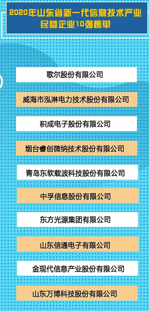 山東新一代信息技術產業民營企業10強榜單