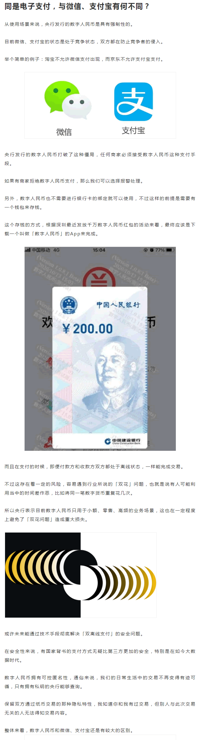 同是電子支付,數字人民幣與微信、支付寶有何不同