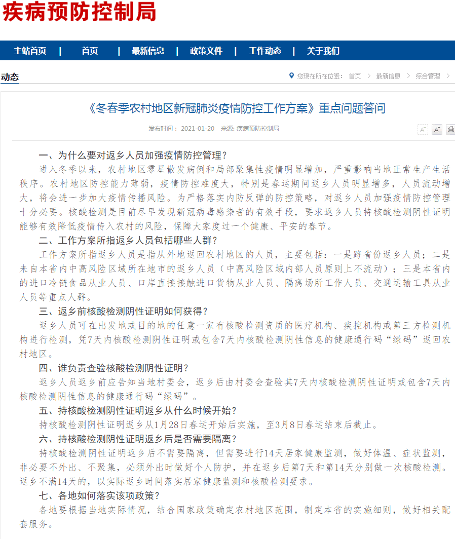 持核酸檢測陰性證明返鄉從1月28日春運開始后實施,至3月8日春運結束后截止。
