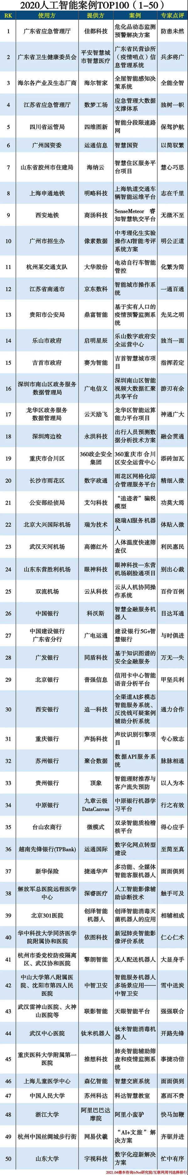 2020人工智能案例TOP100