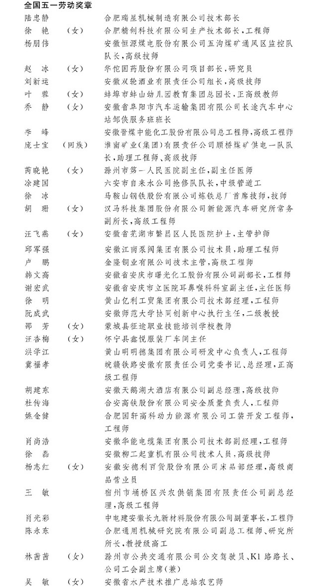為表彰先進,樹立榜樣,激勵全省廣大職工建功新時代,奮進新征程,吉林省人力資源和社會保障廳、吉林省總工會決定,授予張宏等100名職工“吉林省五一勞動獎章”,頒發獎章、證書和獎金