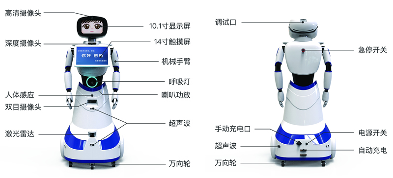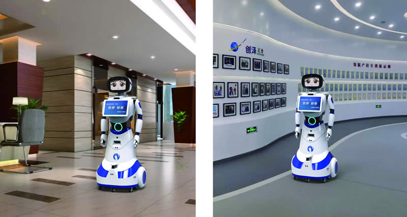 迎賓服務機器人“創創”集成人臉識別,多種傳感器感知外部環境信息,實現人類與機器人的無障礙交流