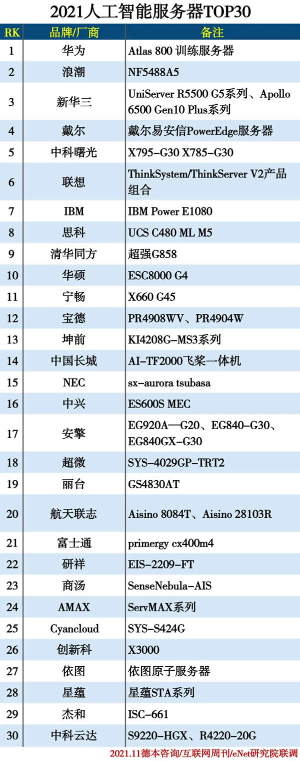 2021人工智能服務器TOP30