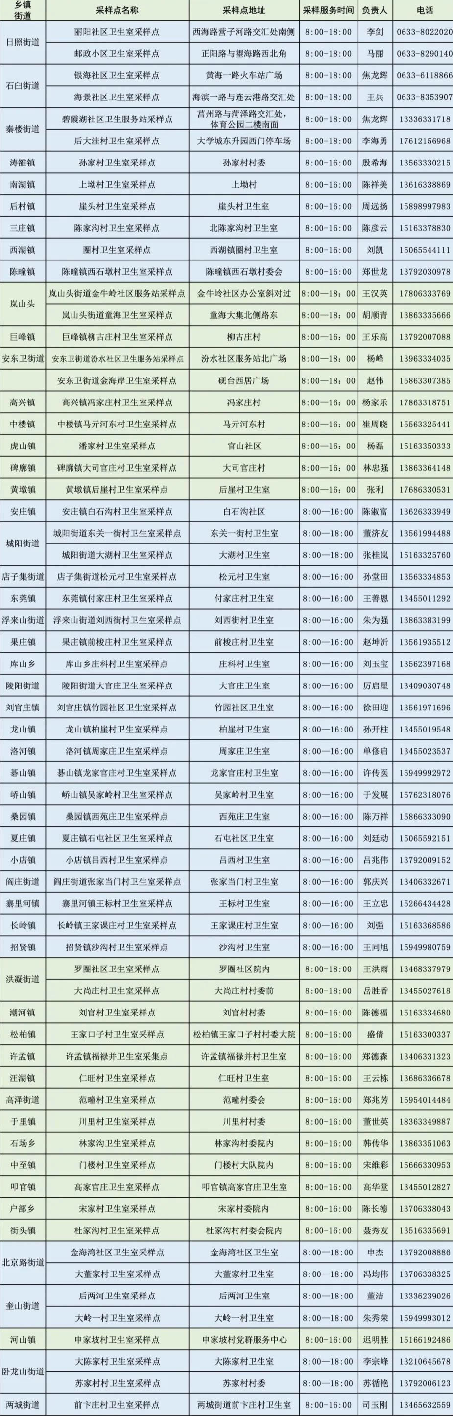 名單公布!日照首批村(社區)核酸檢測采樣點