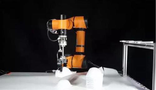 利用柔性抓取工具配合輕型協(xié)作機(jī)械臂,研發(fā)出N95口罩自動(dòng)化分揀系統(tǒng),可以快速部署在口罩生產(chǎn)線上,代替人工分揀。