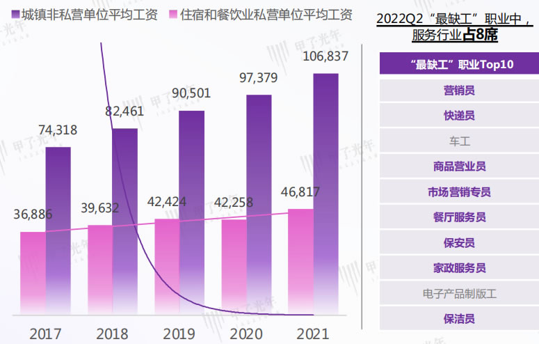新G疫情大流行,造成勞動力整體流動性下降,勞動人口與崗位錯配,同時受限于整體工資水平低下,服務業(yè)勞動力短缺問題愈發(fā)嚴重;