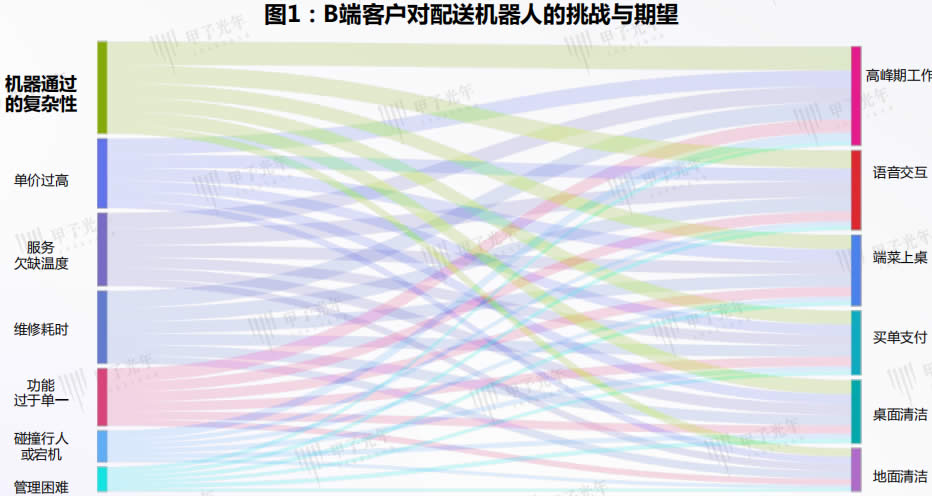 服務行業B端用戶對配送機器人的期望較G,地面通過引起的復雜性難題凸顯。