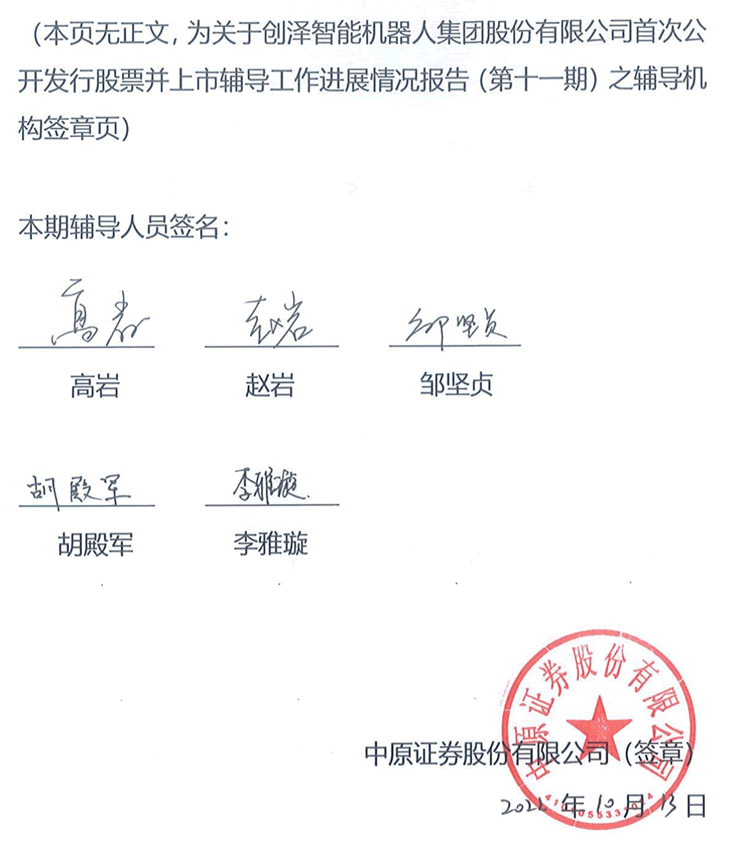 創澤智能機器人集團股份有限公司首次公開發行股票并上市輔導工作進展報告(第十一期)