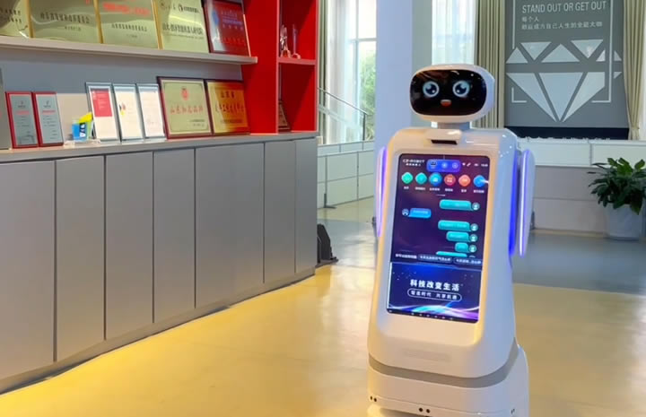 前臺接待機器人為多種類型的單位(如餐廳,商場,展廳,接待室,機場,車站,圖書館,學校等)完成前臺接待工作,按照設置好的路線提供講解服務,隨時解答訪客提出的相關問題