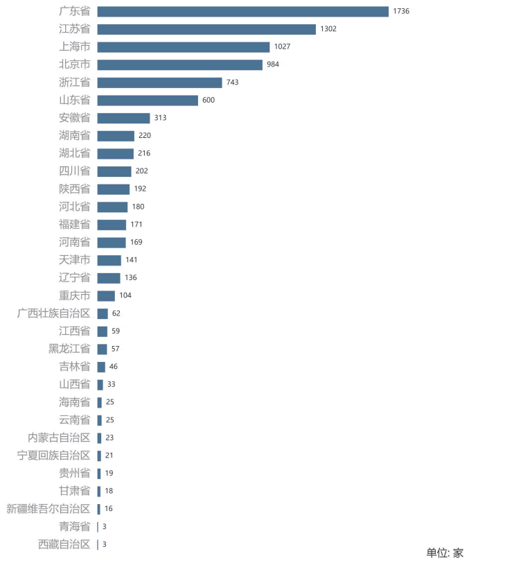 截止到2023年02月28日,廣東省、江蘇省和上海市機器人產業企業數量位列全國前三,分別有1, 7 3 6、1, 3 0 2和 1,027家。