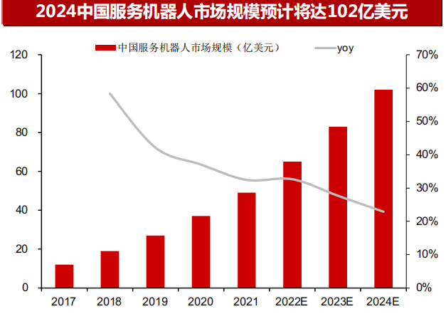 中國機(jī)器人2024年有望達(dá)251億美元市場規(guī)模,2020-2024年CAGR約22%。