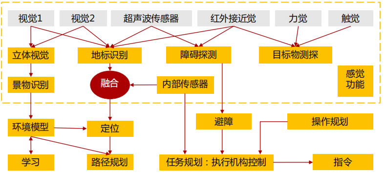 視覺感知控制基于2D,3D攝像頭信息采集實(shí)現(xiàn)目標(biāo)感知;多模態(tài)融合控制進(jìn)行感知模態(tài)信息融合進(jìn)行運(yùn)動預(yù)測與意圖識別